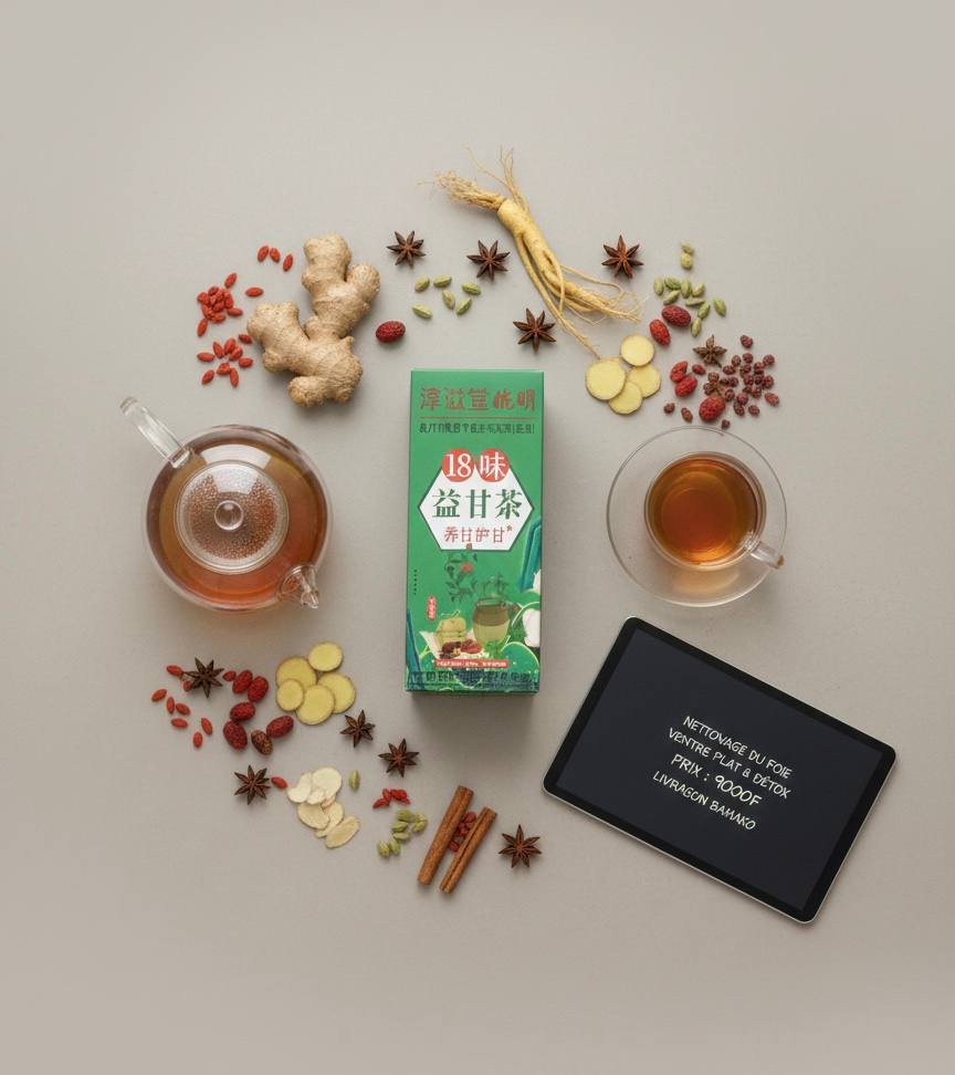 Le Thé 18 Saveurs n’est pas une simple boisson, c’est une cure complète de remise en forme. Alliant sagesse ancestrale et plantes rigoureusement sélectionnées, ce thé est la solution idéale pour ceux qui cherchent à retrouver un ventre plat, un foie léger et une énergie débordante sans produits chimiques.